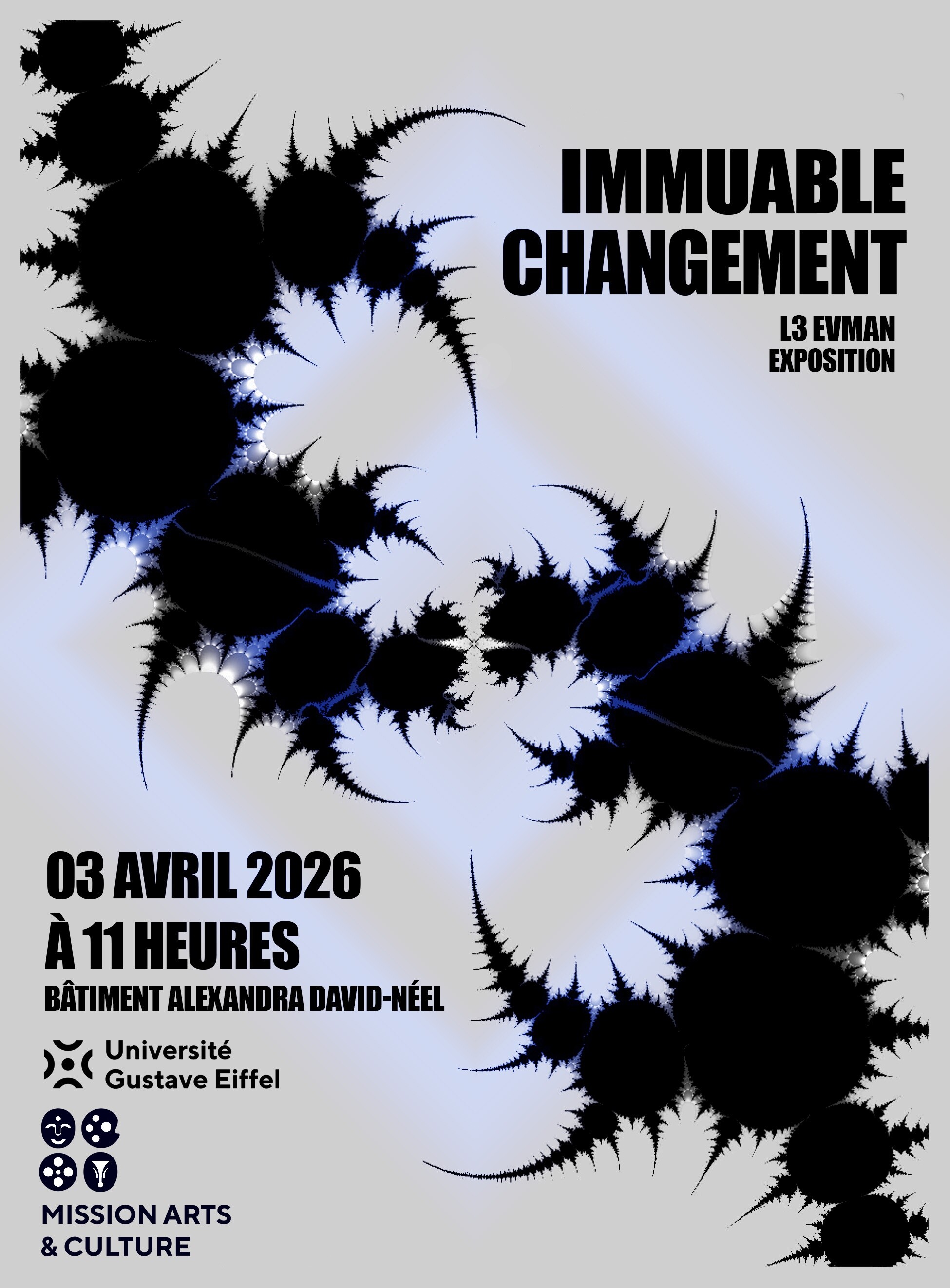 Pour cette édition de la Journée des Arts, les L3 EVMAN ont réalisé des projets autour du sujet: Immuable changement.